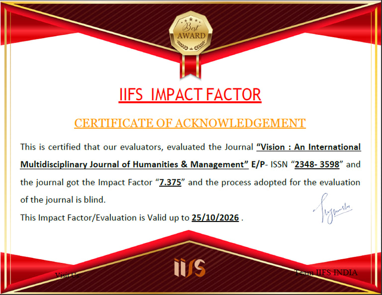 Vision : An International Multidisciplinary Journal of Humanities & Management